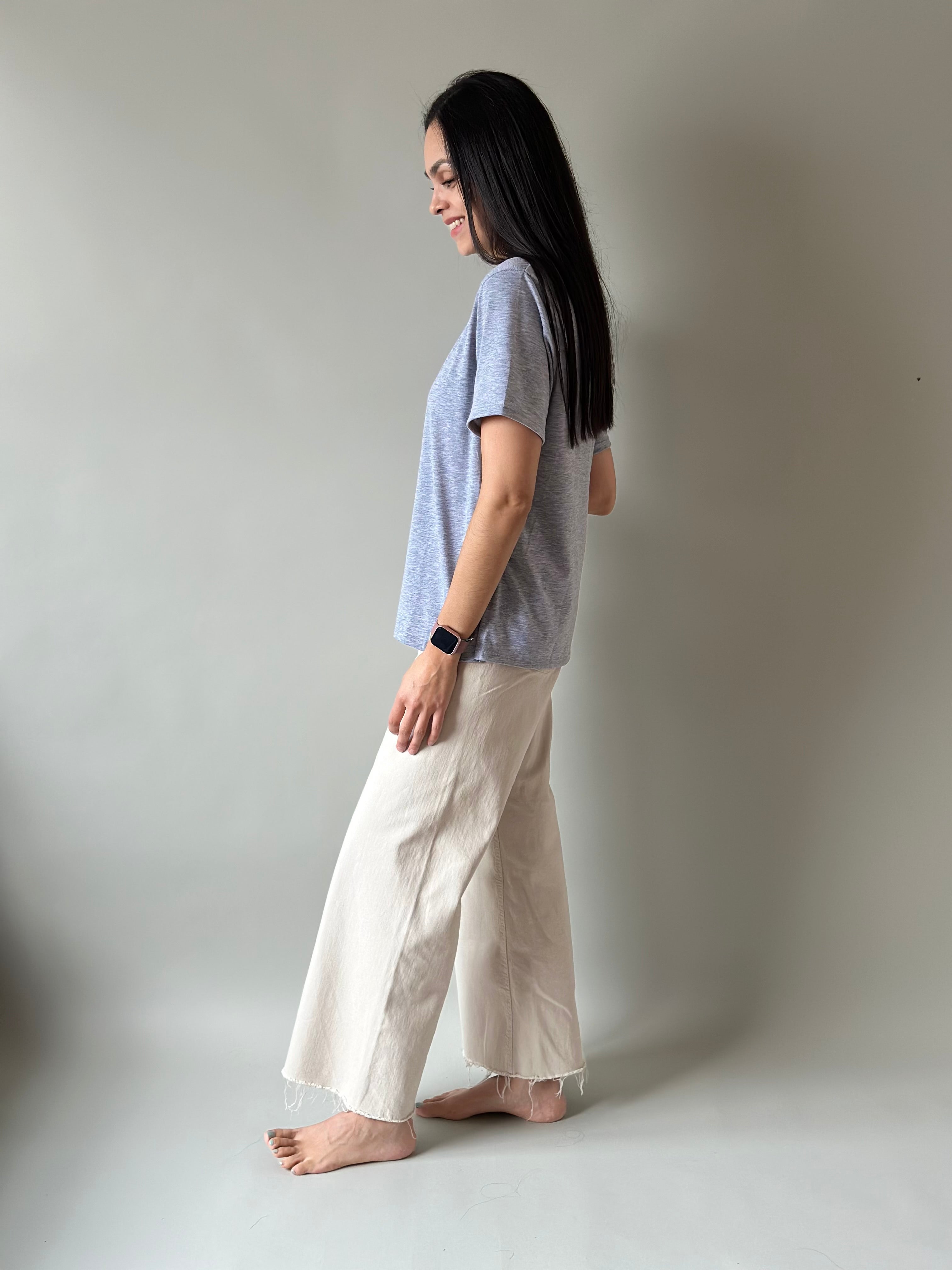 Playera de maternidad y lactancia con manga corta, confeccionada en tela suave y elástica.