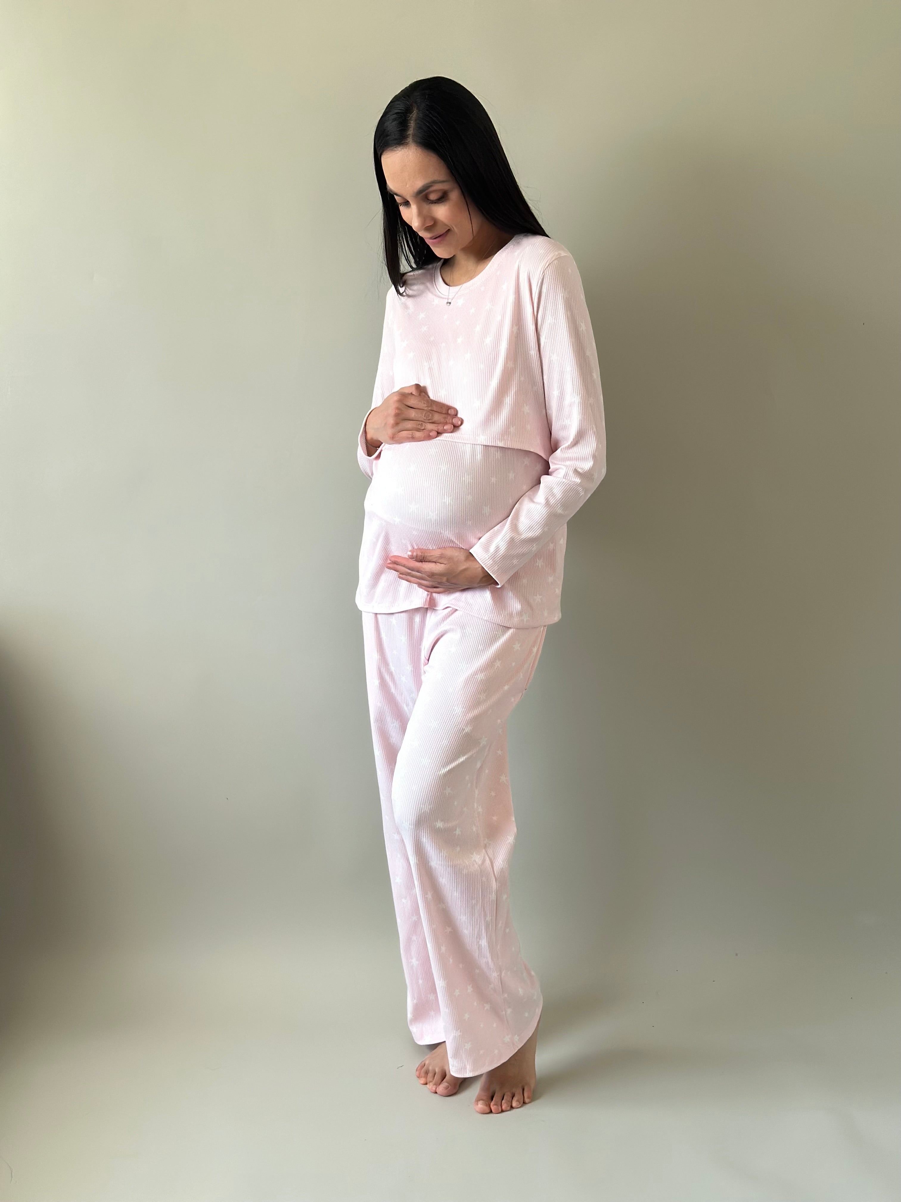 Pijama de maternidad y lactancia •Estrellas rosa•